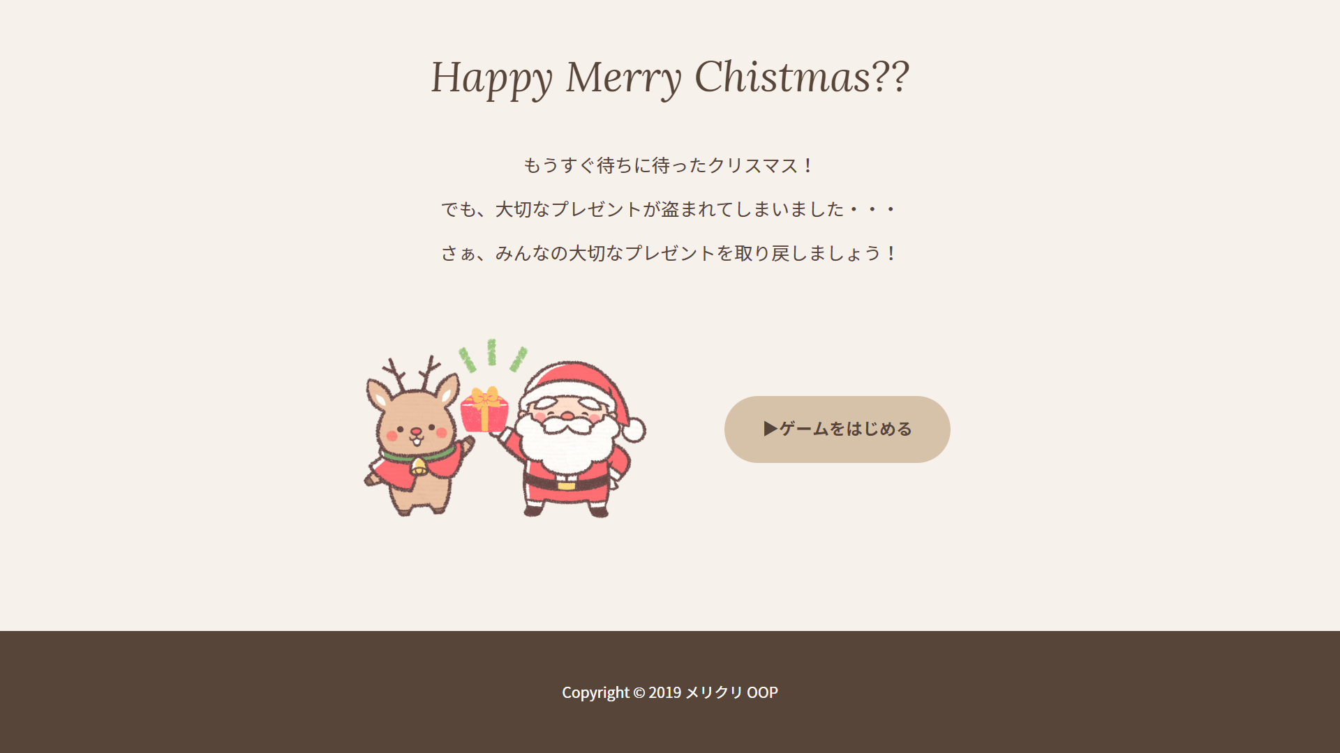 個人開発でオリジナルゲームを制作しました。出てくるキャラクターからクリスマスプレゼントを集めるシンプルなゲームです。